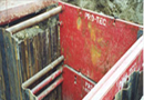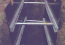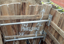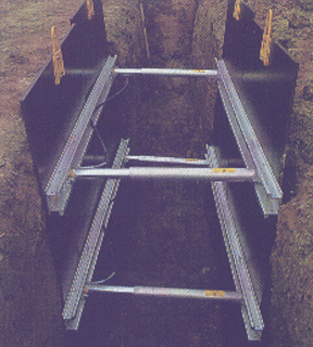 Se utilizan los Andamios hidráulicos de aluminio para crear mayor espacio entre los cilindros de la zanja, para este caso es necesaria la construcción de travesaños. Se usa madera contrachapada o Fin Form para formar una pared de contención que proteja la obra y a los obreros en caso de derrumbe.