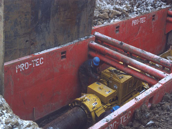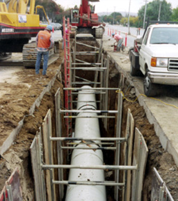 Se usan las bombas y sistemas WellPpoint para controlar o retirar el contenido líquido durante la instalación de tubos en al alcantarillado.