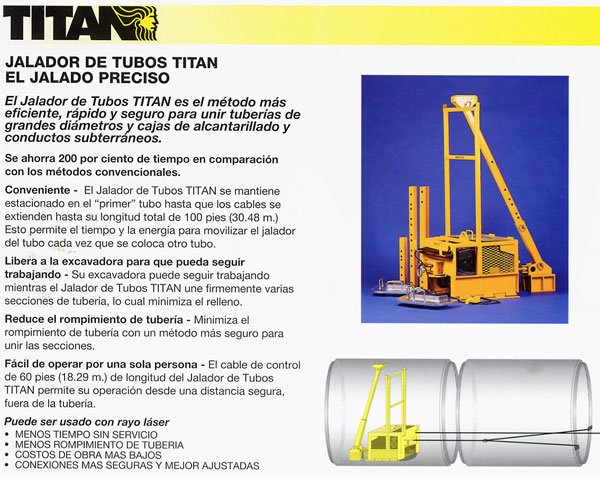 El jalador de tubo es reconocido como el mejor y más eficiente método para unir tuberías de grandes volúmenes redondas o cuadradas, colocar cajas de alcantarillado y conductos subterráneos.